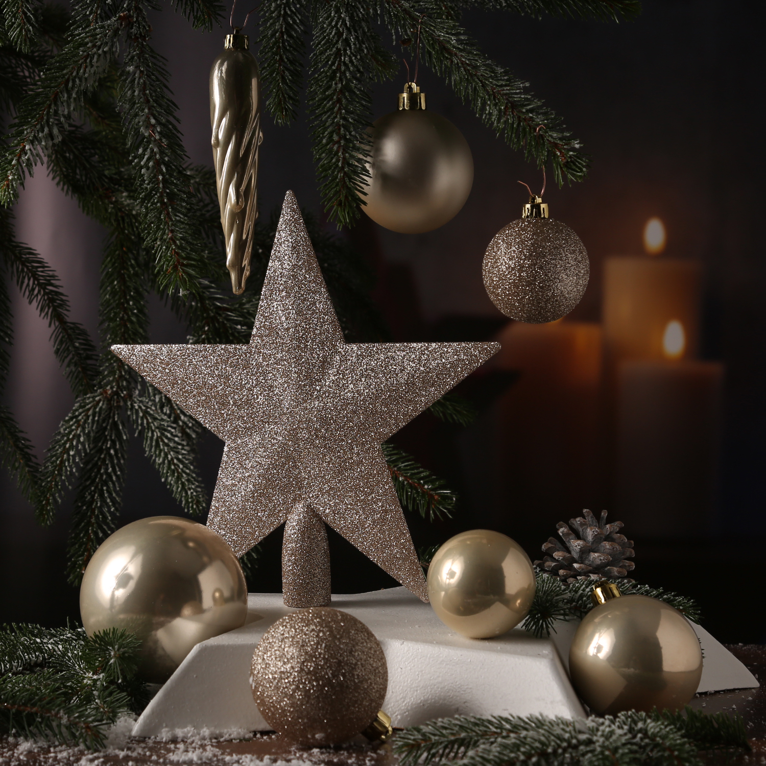 B-Ware Christbaumkugel - Weihnachtsbaumkugel - bruchfest - glänzend matt glitzernd - champagner - 33er Set