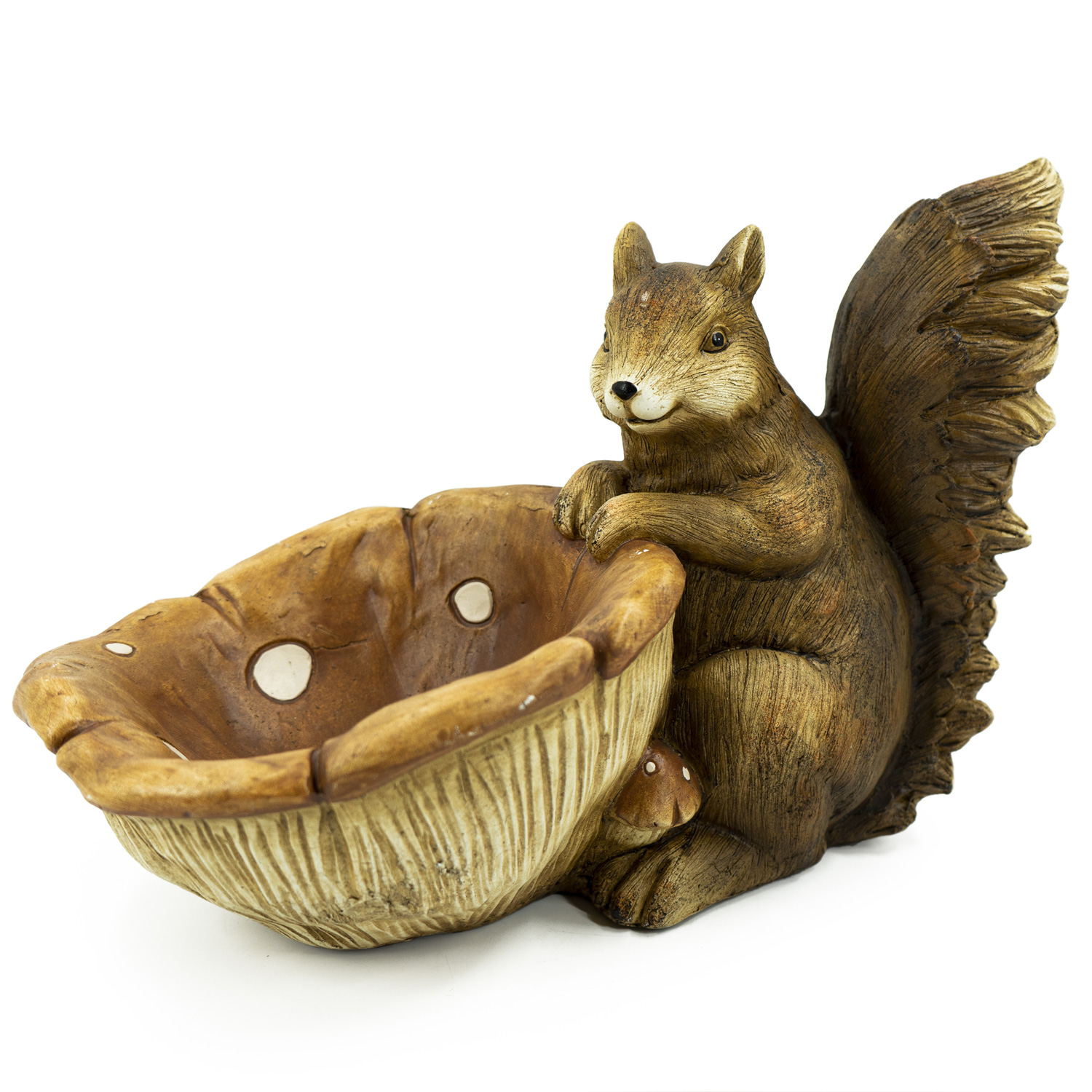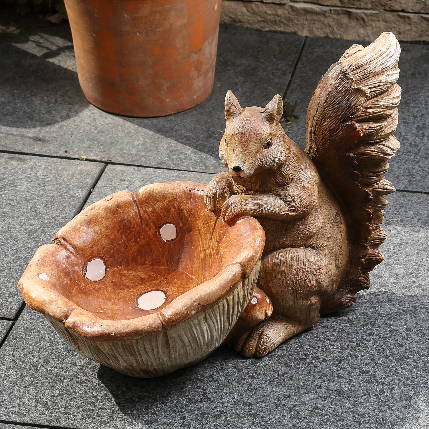 Dann ist diese tolle braune Futterstelle für Deinen Garten, Deinen Balkon oder Deine Terrasse genau richtig. Das Eichhörnchen mit der Pilzschale sieht richtig süß aus.