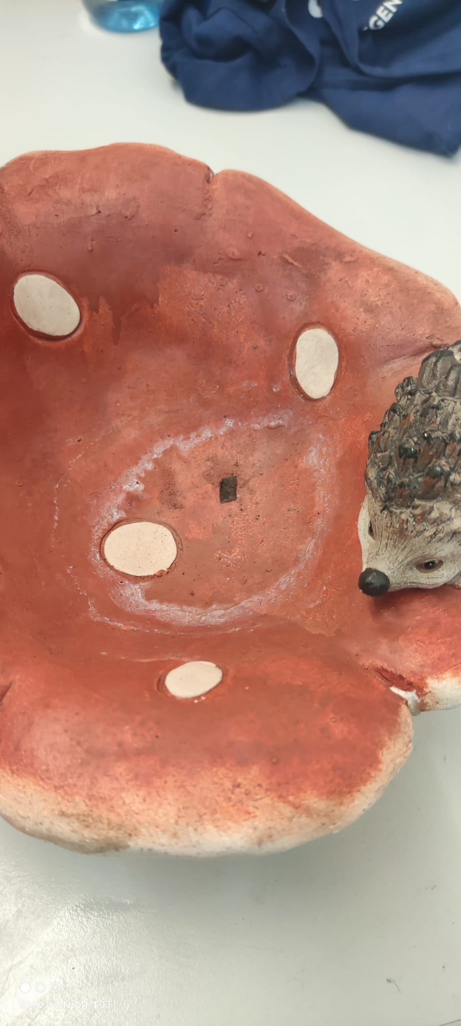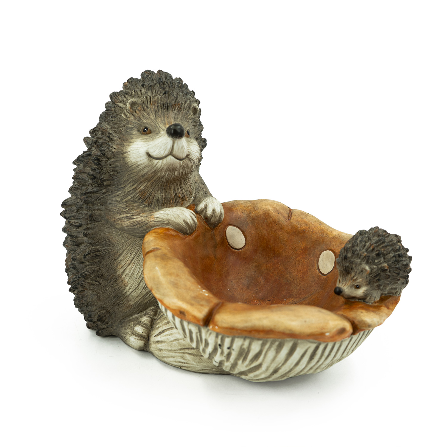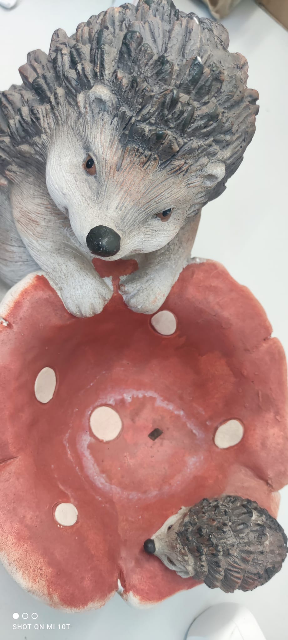 - Erscheinung: Gartenfigur Igelmutter mit Pilzschale und Kind