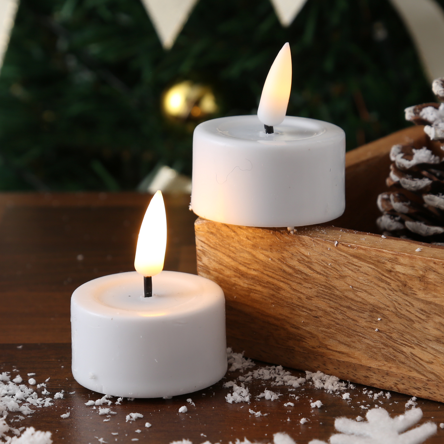 B-Ware LED Teelichter MIA - Echtwachs - realistische 3D Flamme - D: 4,1cm - Batteriebetrieb - weiß - 2 Stk