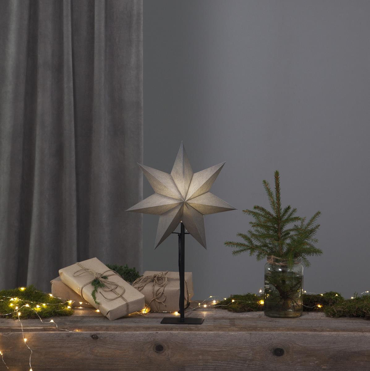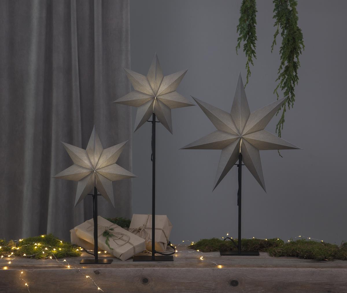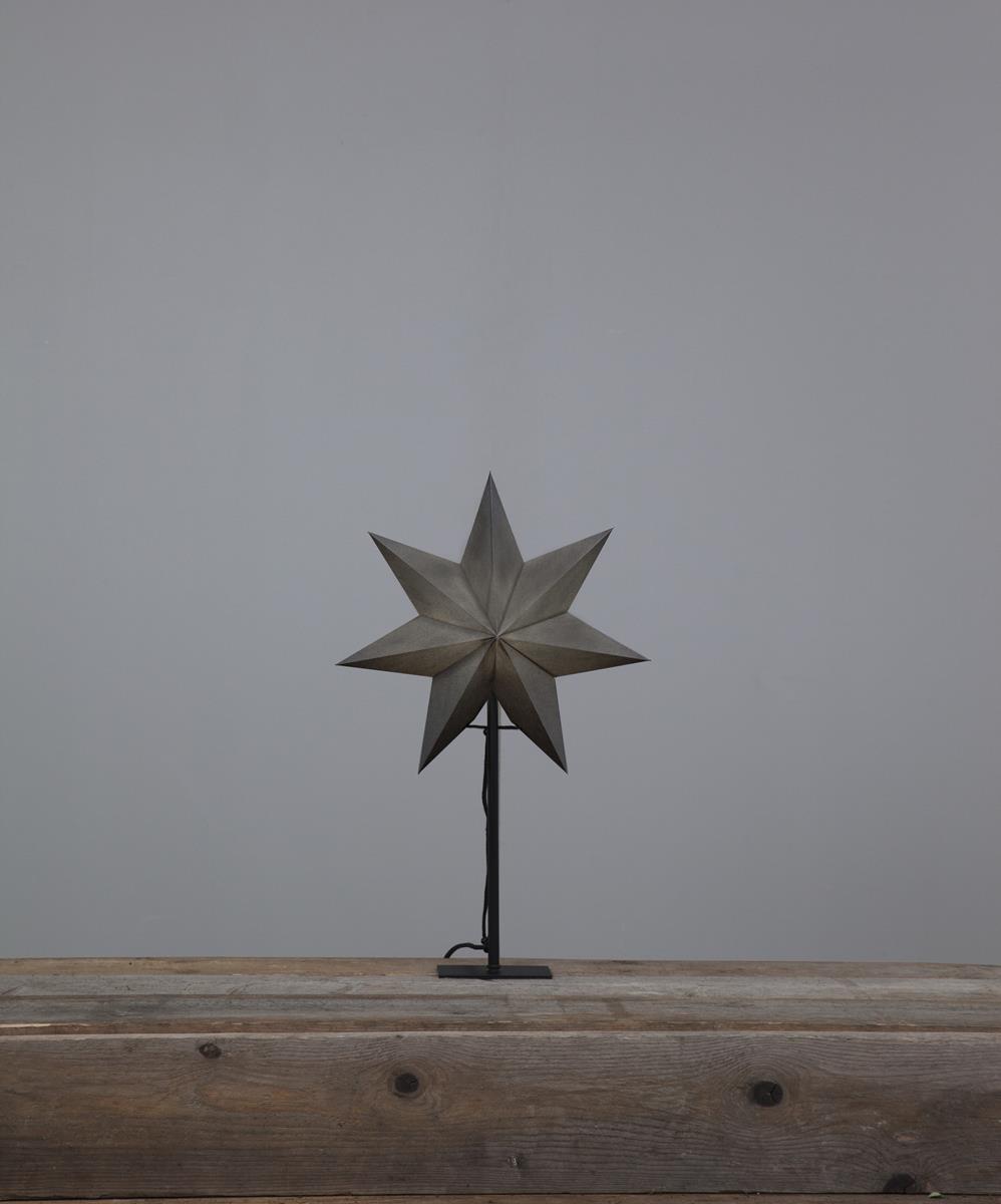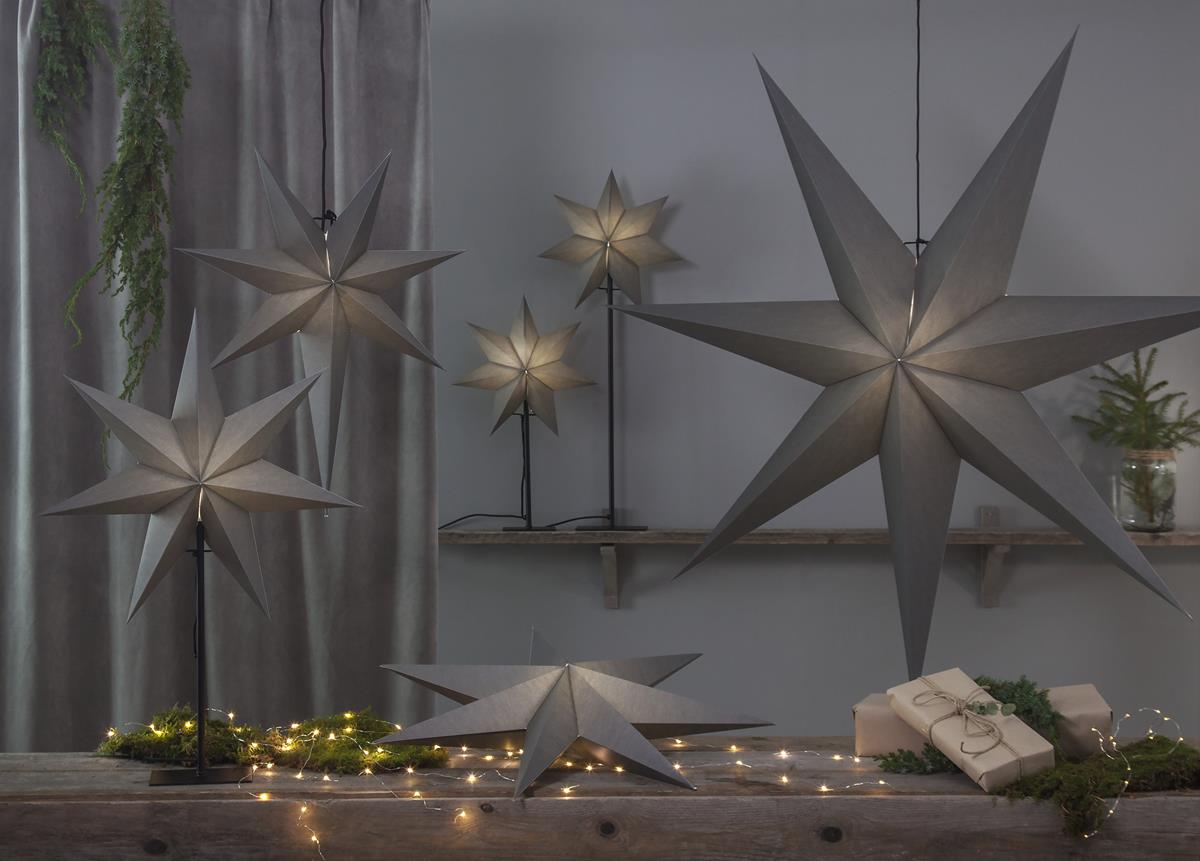 Papierstern Ozen - stehend - 7-zackig - D: 34cm, H: 55cm - inkl. E14 Fassung u. Kabel - grau